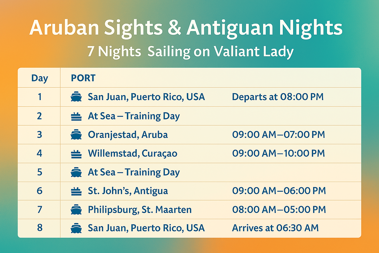 💼 Note: Registration for the training is separate from the cruise booking. Once registered for the training, our private travel agent will help you reserve your Sea Terrace room with ease.